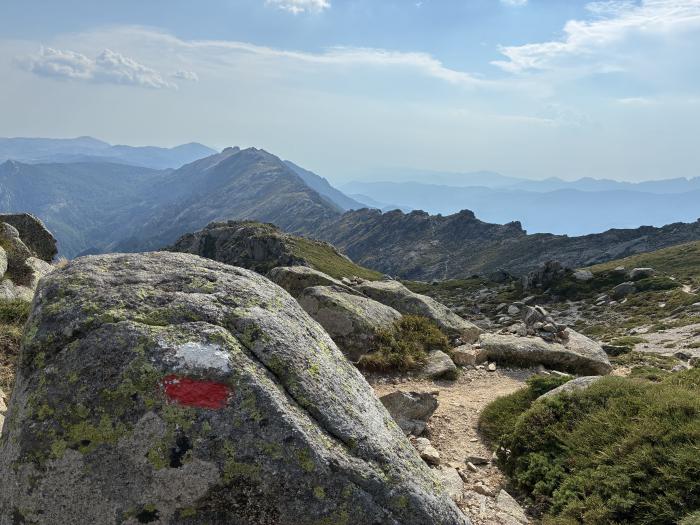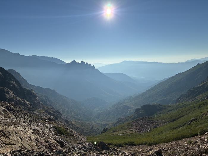 The GR20 is commonly divided into 16 stages, each ending at a refuge or bergerie. As wildcamping is not allowed, hikers must stay either in these accomodations or place their tent at designated camping areas around the accommodation. Although the terrain is one of the most difficult I have encountered on hikes (especially in the Northern part), the stages are not really long, ranging from 4 hours to a max of 8h30. Due to the Mediterrean heat in August, many hikers start their day before sunrise allowing for hiking in a bit cooler temperatures compared to the heat in the high sun in the afternoon.